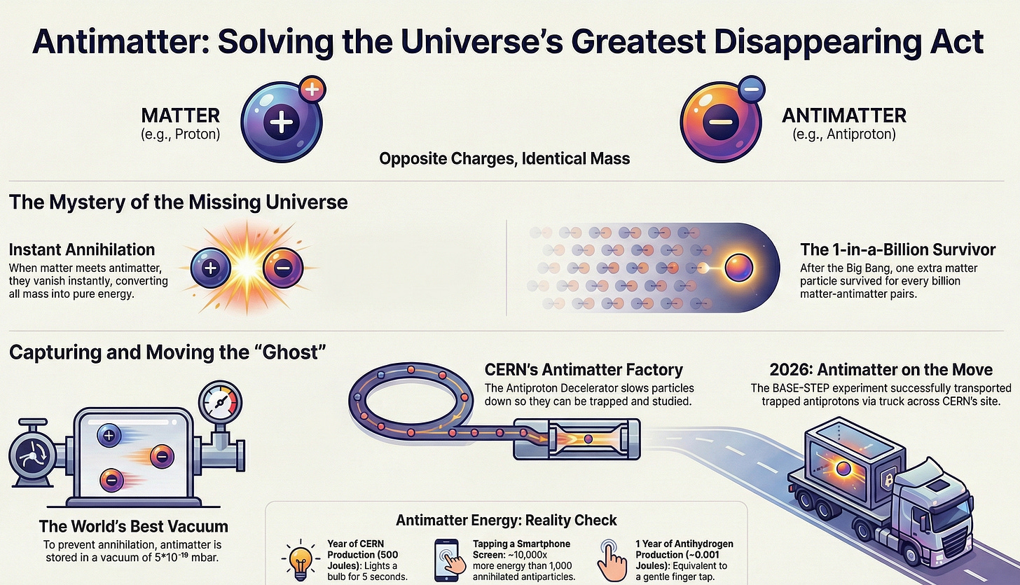 The experiment was designed to answer a fundamental question about matter and antimatter, but it also points to a practical shift: the possibility of moving one of the most fragile forms of scientific material beyond the facility that produces it.