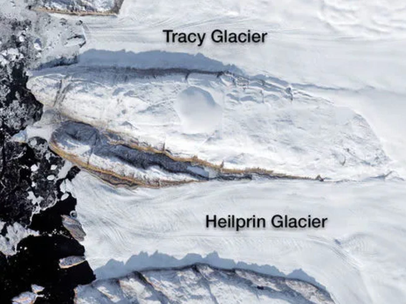 In recent years, Heilprin Glacier, one of the outlet glaciers that drains part of the Greenland Ice Sheet into the head of Inglefield Fjord, has been studied alongside nearby Tracy Glacier as part of NASA-supported research into the variation between how glaciers respond to warming. Though geographically proximate, the two glaciers behave differently, revealing how bedrock structure, fjord geometry, and ice dynamics interact in ways that resist simple modeling.